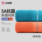 洁丽雅纯棉5A抗菌毛巾2条装女家用酒店男纯色缎档面巾全棉擦脸..